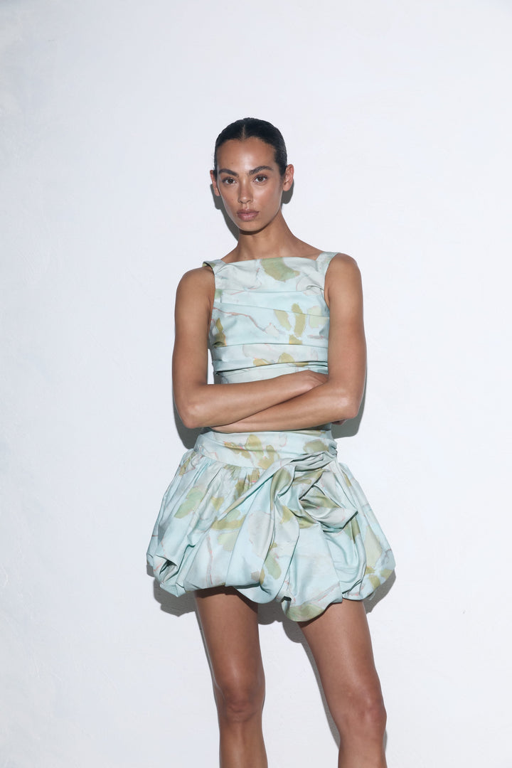 The Fairley Mini Dress in Marigold embraces volume and texture. Designed to be fitted through the bodice and relaxed toward the hem, complimented with a woven crinkle fabrication, soft layers toward the hem and adjustable spaghetti straps.